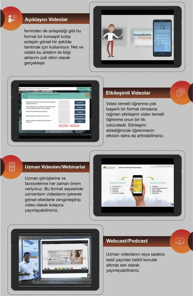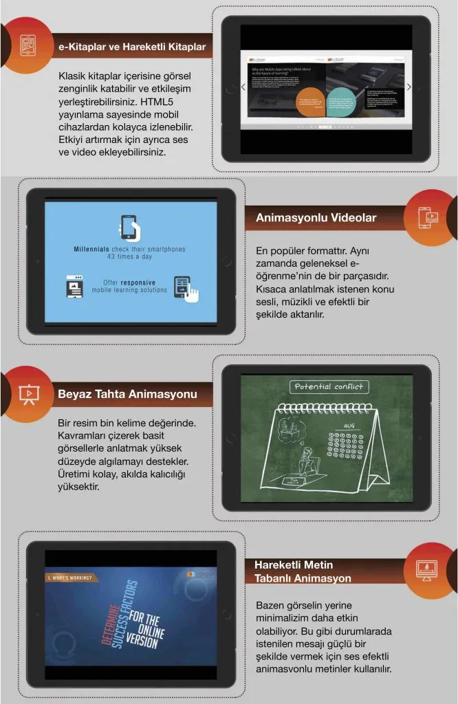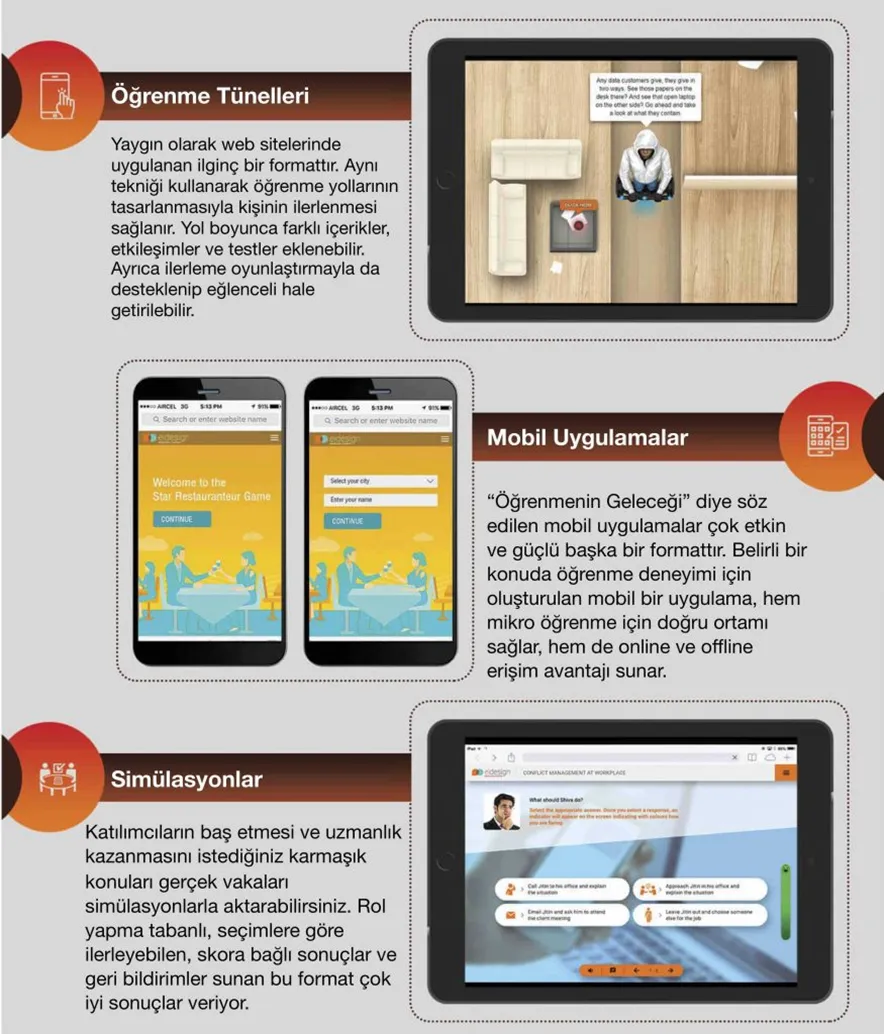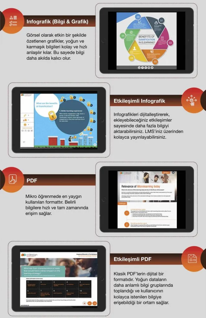 Aşağıda, kolayca kullanabileceğiniz farklı mikro öğrenme tekniklerini yine bir mikro öğrenme formatı olan “Infografik” ile hazırladım.